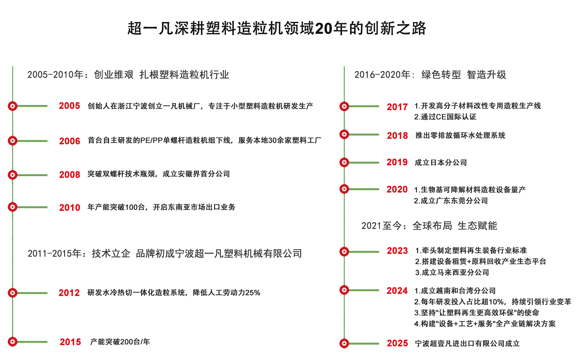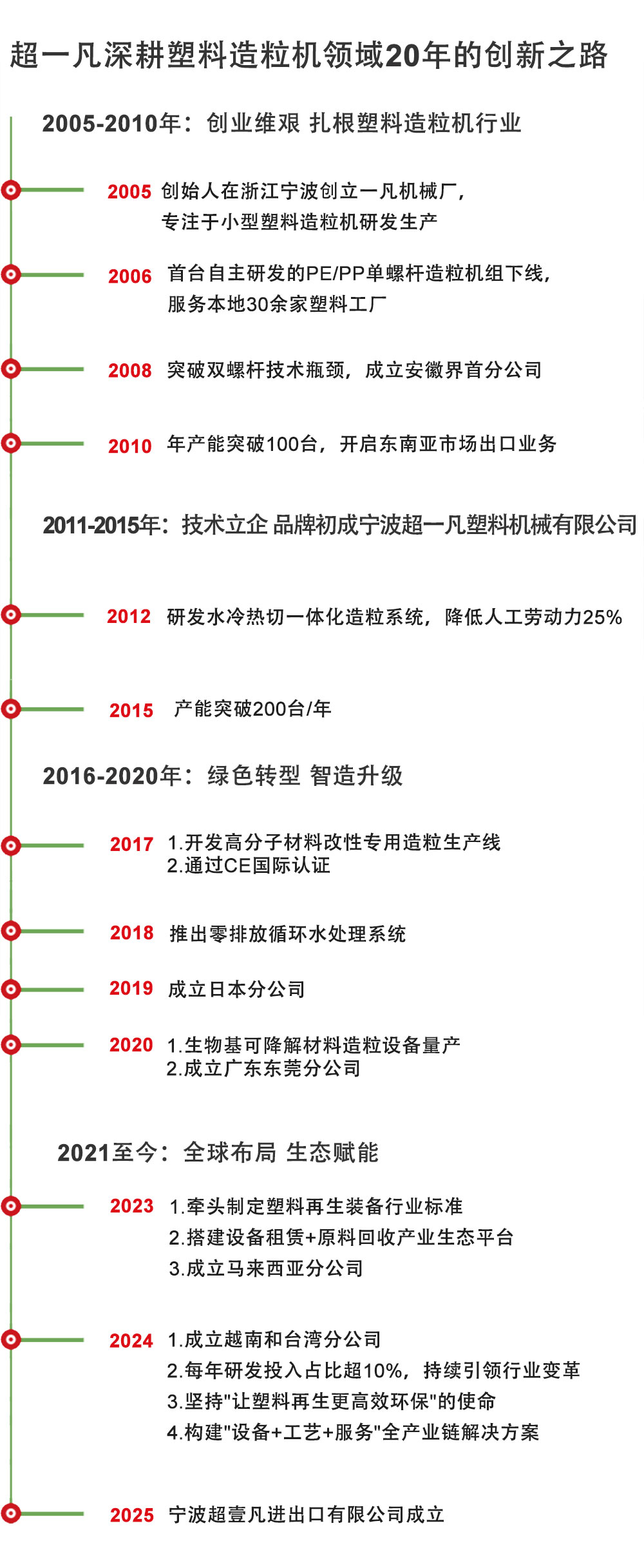 深耕塑料造粒机20年,是一家在行业颇具影响力的现代化企业,公司总部坐落于中国浙江省宁波市余姚市塑料城。自创立以来,始终专注于再生废旧塑料:撕碎-分拣-粉碎-清洗-脱水-造粒成型以及新材料改性制造,凭借专业的研发团队和先进的技术设备,不断推陈出新,打造出一系列高品质产品,如:双螺杆改性造粒机,单螺杆片料造粒机,单螺杆薄膜造粒机,塑料切粒机,无网模头,立式搅拌机等,广泛应用于塑料改性造粒,深受客户信赖与好评。公司秉持以质量为基础,服务为导向,客户满意为最终方向的理念,凝聚了一批高素质、富有创新精神的专业人才,现有员工100余人,他们凭借丰富的行业经验和精湛的专业技能,为公司持续发展提供强劲动力。